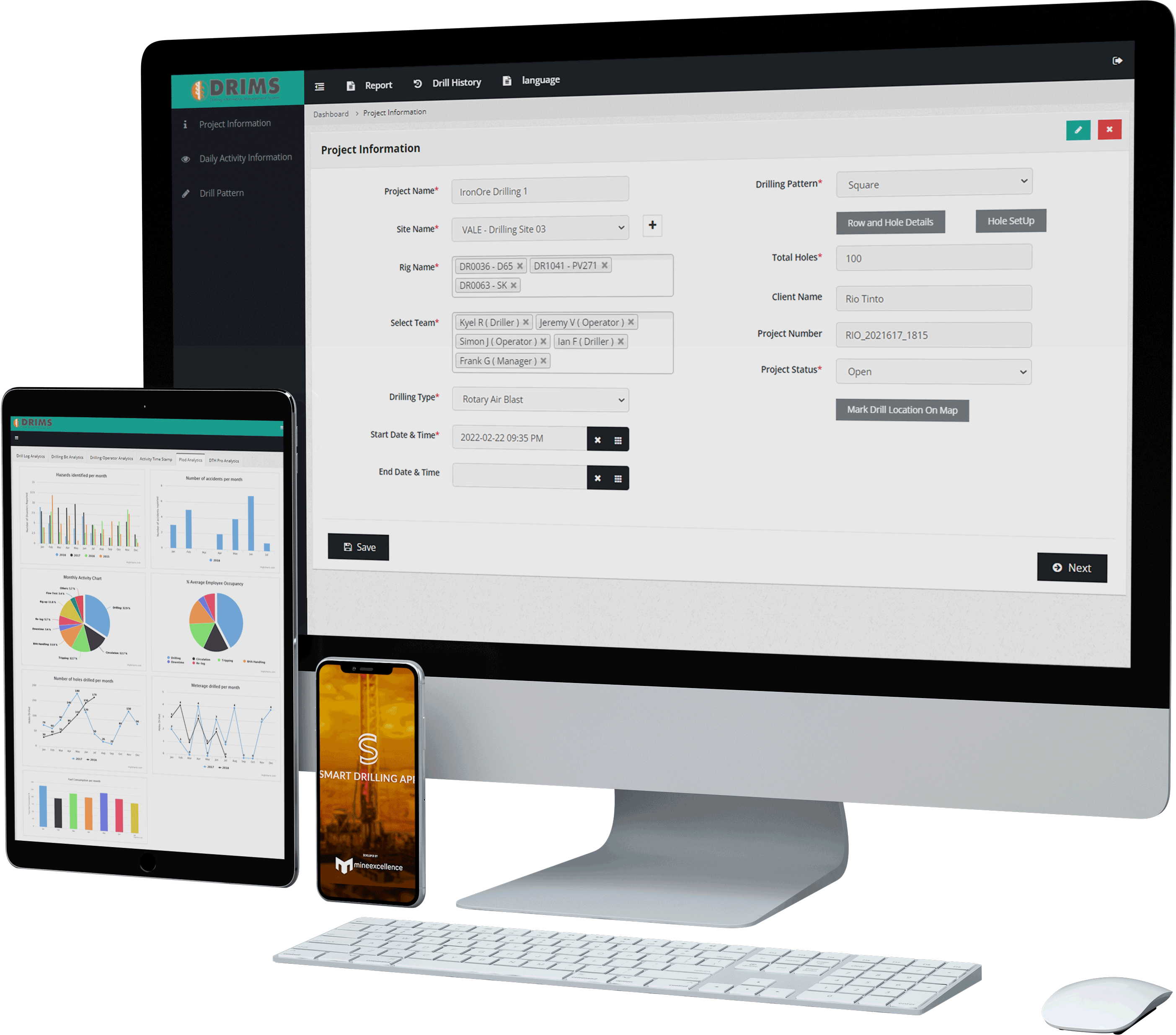 DRIMS have integration with smart drill rigs, where we can directly import the MWD data in our system.