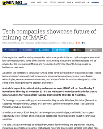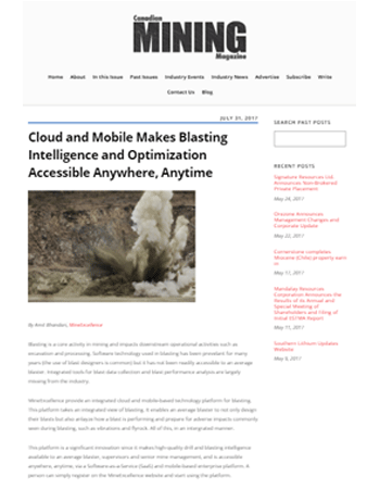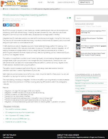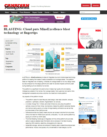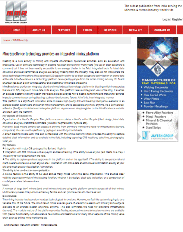 MineExcellence is an innovative technology firm catering to the mining industry. We have been mentioned/featured in a number of leading industry journals and publications. Here are some highlights.